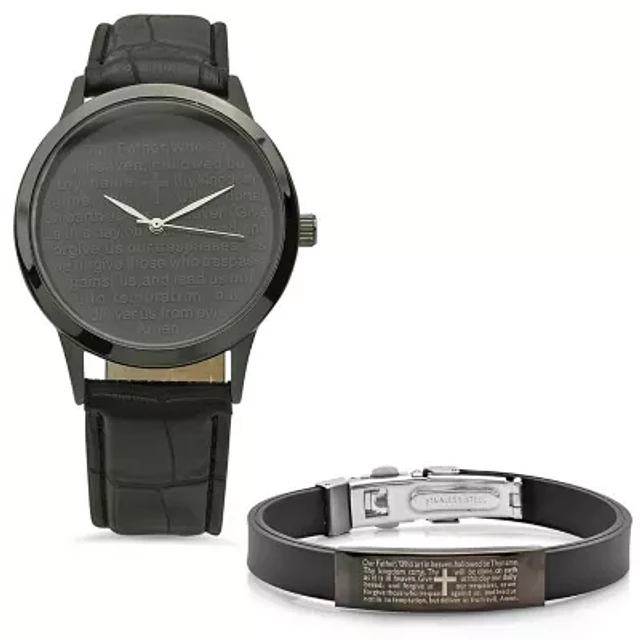 Steeltime Mens Lord's Prayer Black Bracelet Watch-998-019-W-613-150-B