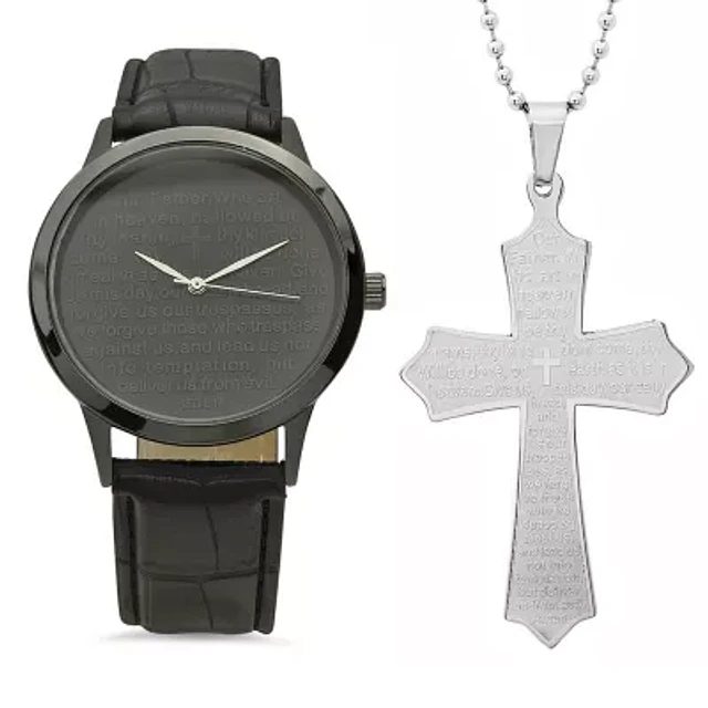 Steeltime Mens Lord's Prayer Black Strap Watch-998-019-W-711-092-B
