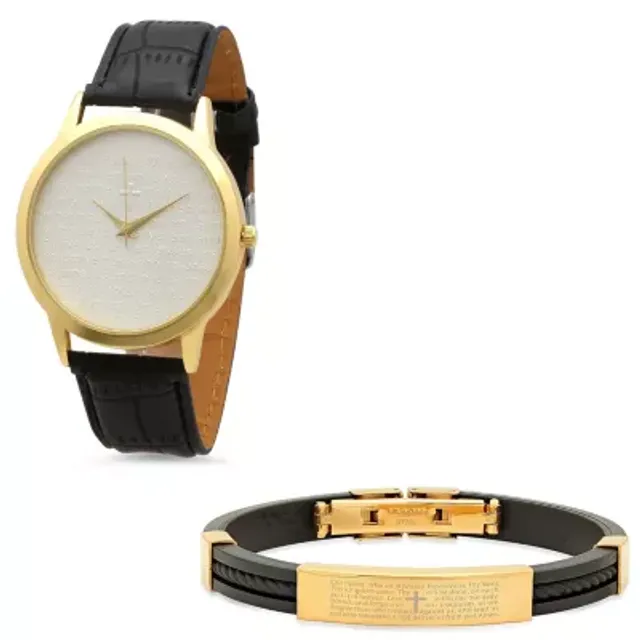 Steeltime Mens Lord's Prayer Gold Tone Bracelet Watch-998-011-W-B