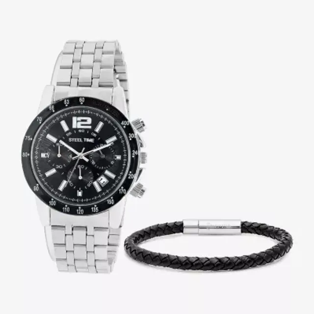 Steeltime Mens Silver Tone Stainless Steel 2-pc. Watch Boxed Set 998029w617036
