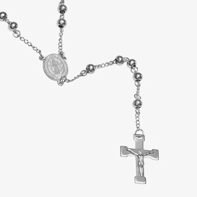 Mens Stainless Steel 36” Cross Rosary Necklace