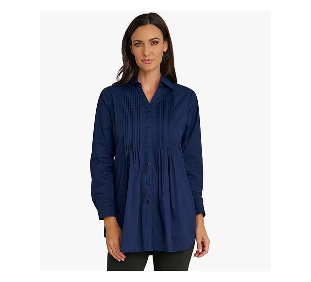Stella Carakasi Women's Long Sleeve Cotton Poplin Pintuck Tunic