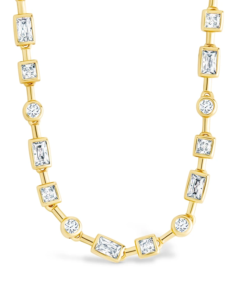 The Camden Cubic Zirconia Staggered Tennis Necklace isn't your average tennis chain. With a mix of round, square, and baguette-cut Hearts Arrows Cubic Zirconia stones in sleek bezel settings, it's the perfect balance of classic and unexpected
