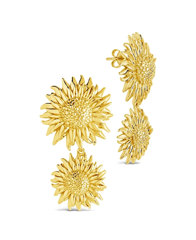 Sterling Forever Gold-Tone or Silver-Tone Triple Sunflower Solaris Drop Studs