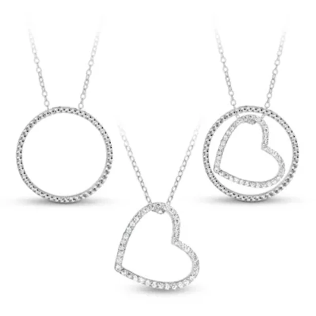 Sterling Silver 3-in-1 Cubic Zirconia Circle Heart Necklace