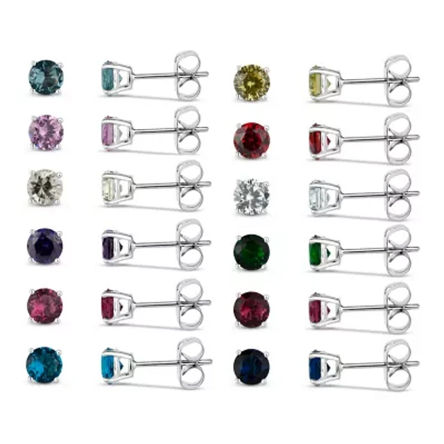 Sterling Silver 5mm Round Simulated Gemstone 12 Earring Pair Set