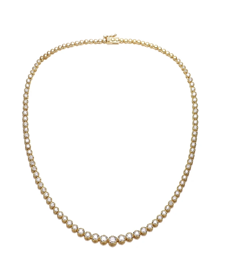 Elevate your jewelry collection with the timeless allure of our Sterling Silver Cubic Zirconia Graduated Tennis Necklace. This exquisite piece is designed to capture the light from every angle, featuring a meticulously crafted strand of brilliant-cut Cz stones that gracefully increase in size toward the center. Whether you are stepping into any special occasions or daily elegance, this necklace serves as the ultimate statement of luxury and refined taste. Available in opulent 14K Gold Plating for a classic warm glow or sleek White Gold Plating for a modern, icy finish, it offers a high-end look that seamlessly transitions from day to night. Feel the weight of quality and the spark of confidence as this shimmering masterpiece rests elegantly against your neckline, making every moment special.• Premium .925 Sterling Silver: White or 14K Gold Plated• Aaa-Grade Graduated Cubic Zirconia Accents• Secure Comfort Box Clasp Closure• Genevive Timeless Glamour
