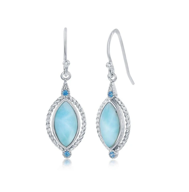 Sterling Silver Marquise Larimar with Round Blue Cz Rope Design Earrings