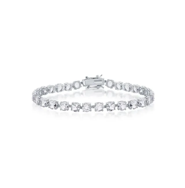 Sterling Silver White Gold Plated Clear Round Cubic Zirconia Tennis Bracelet