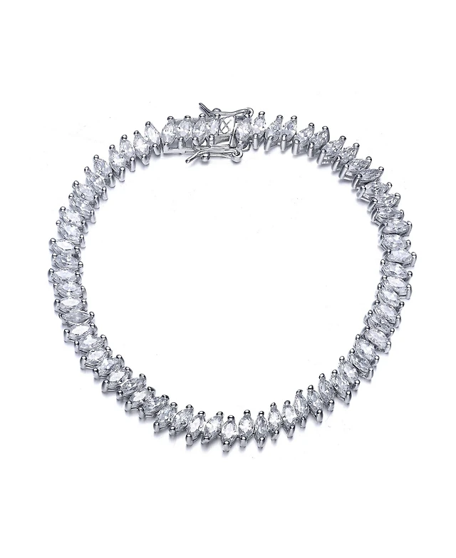 Genevive Sterling Silver White Gold Plated Cubic Zirconia Elegant Bracelet