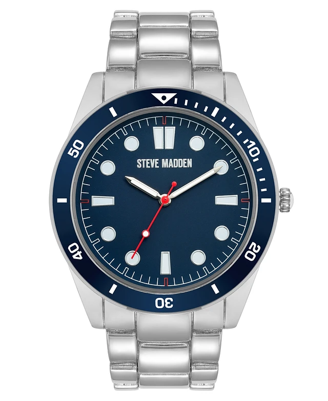 Steve Madden Men's Essential Blue and Black Silver-Tone Alloy Metal Watch, 45mm