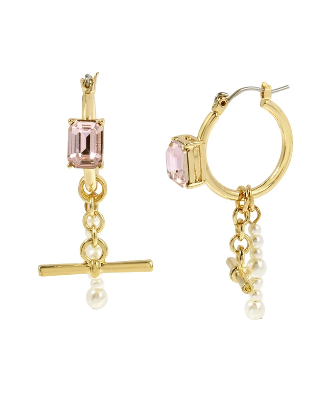 Steve Madden Punk Romance Faux Stone Cultivated Pearl Gem Hoop Earrings
