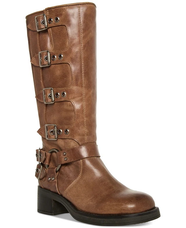 Steve Madden Women's Brocks Buckled Mid-Calf Moto Boots