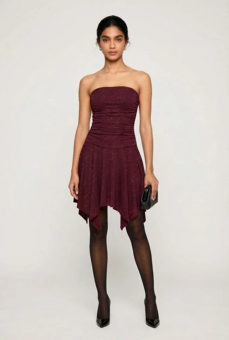 Strapless Side Ruched Handkerchief Hem Dress
