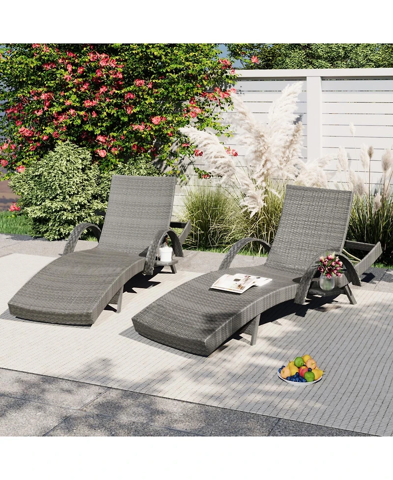 Streamdale 80" Wicker Chaise Lounge Set (2), Reclining, side table, adjustable, Grey