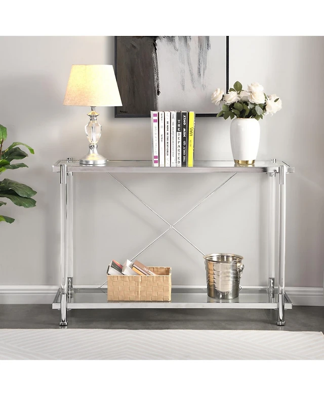 Streamdale Chrome & Acrylic Glass Sofa Table with Storage Shelves