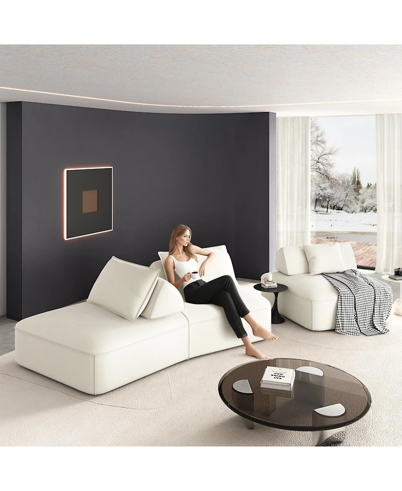 Modern oversized modular sectional sofa. Fluffy chenille fabric, deep seating, removable backrests. No assembly required!