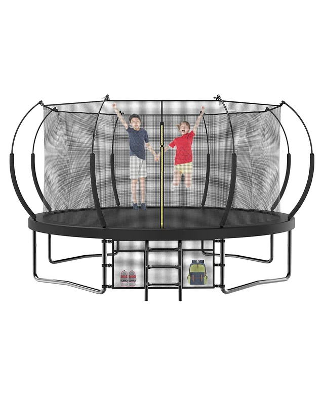 Plexalife Pumpkin-Shaped Outdoor Trampoline Set with Premium Top-Ring Frame Safety Enclosure, Ft