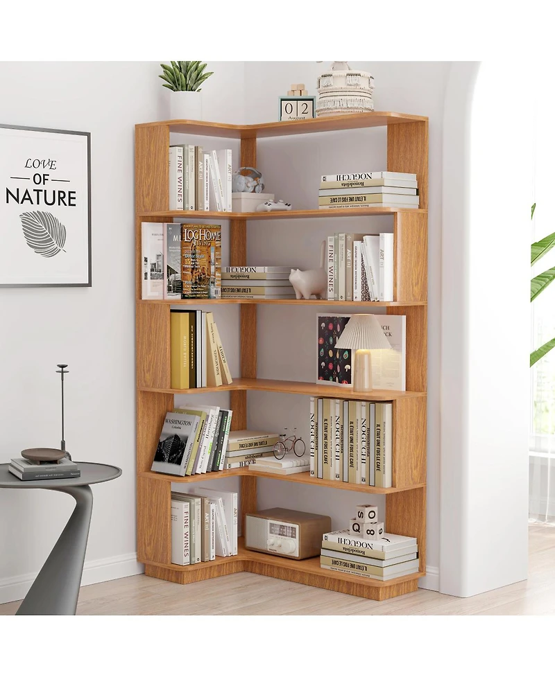 Streamdale Furniture 90cm L-Shape 5-Tier Corner Bookshelf with Anti-Tip in Ponce, PR