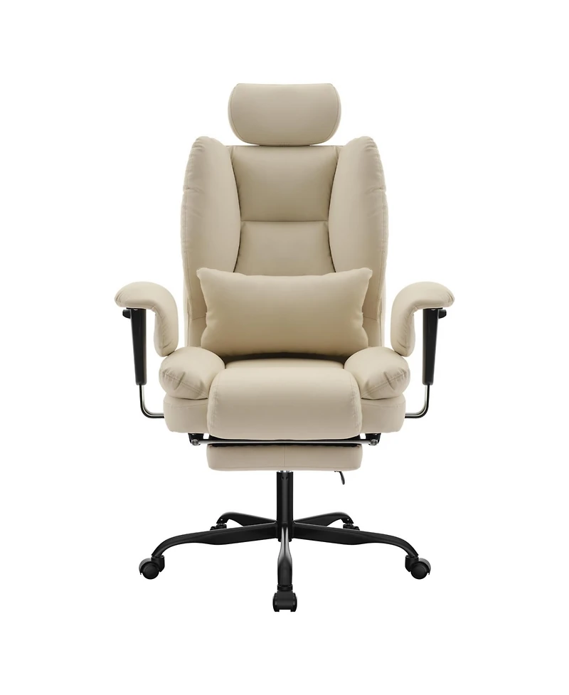 Ergonomic office chair with adjustable headrest, footrest, and lumbar support. Premium Pu leather, memory foam padding, and sturdy metal base for lasting comfort.