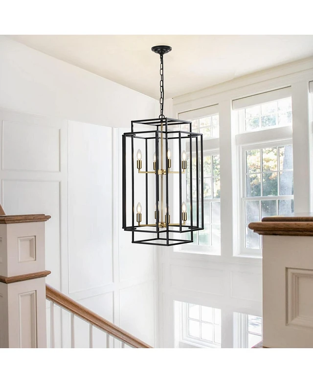 Streamdale Furniture Geometric Pendant Light Black Frame, Gold Base, Adjustable Height