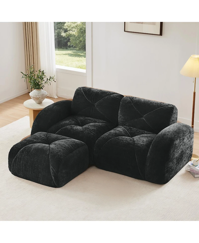 Streamdale Furniture L-shaped Boneless Sofa, Soft Velvet, Tufted, 32D Sponge