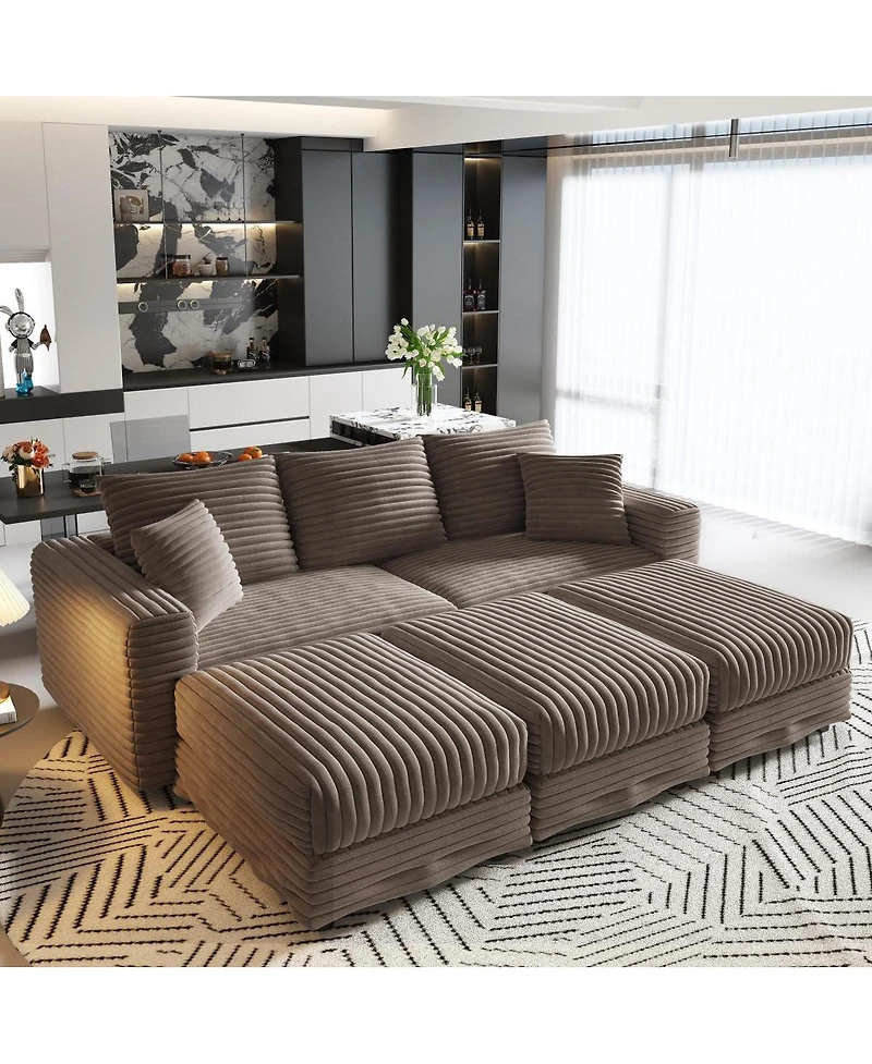 Streamdale Furniture Plush Corduroy 3-Seat Sofa with Movable Ottoman