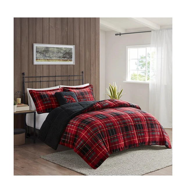 Elegant Comfort Plaid Micromink/Sherpa Reversible Down Alternative Microsuede 3-Pc. Comforter Sets
