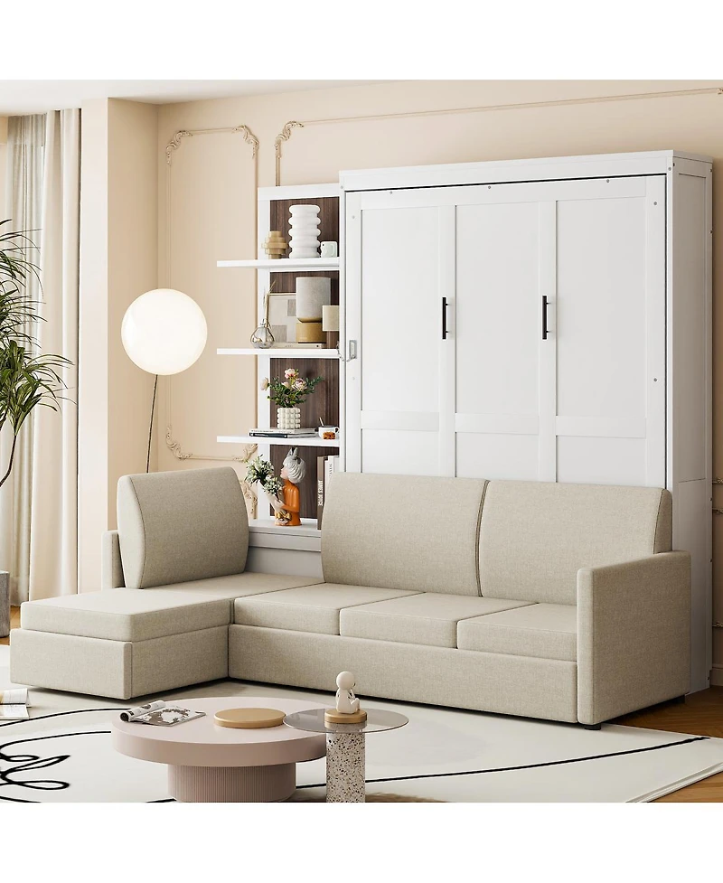 Streamdale Furniture Queen Size Murphy Bed Wall Bed with Sofa and Shelves