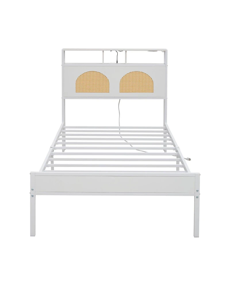 Streamdale Furniture Twin Bed Frame with Headboard, Led & Charging Station, Rattan Headboard