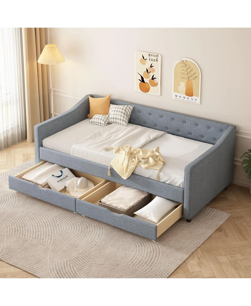 Streamdale Furniture Twin Daybed with Drawers, Tufted Sofa Bed - Light Grey