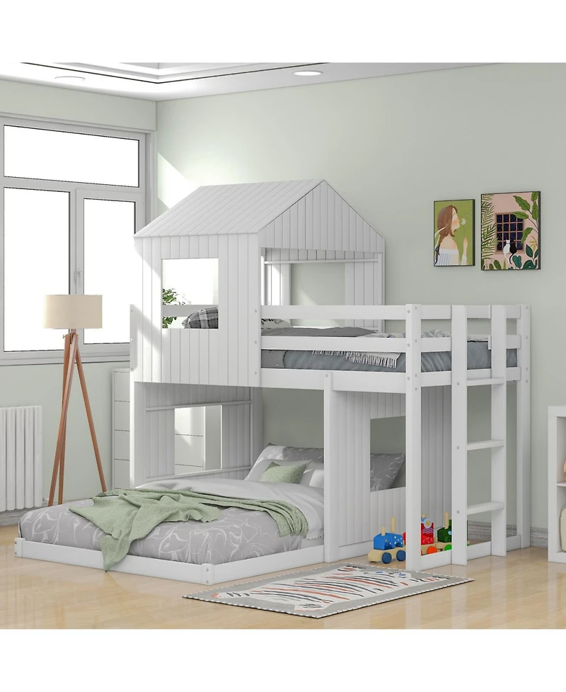 Streamdale Furniture Wooden Twin Over Full Bunk Bed with Playhouse
