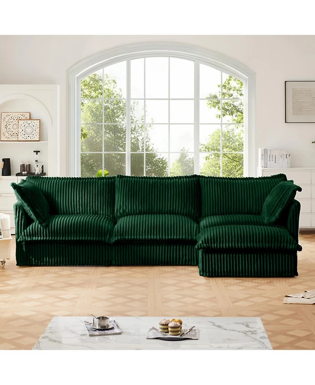 Streamdale Furniture Modern L-Shaped Corduroy Sectional Sofa with Ottoman, Green