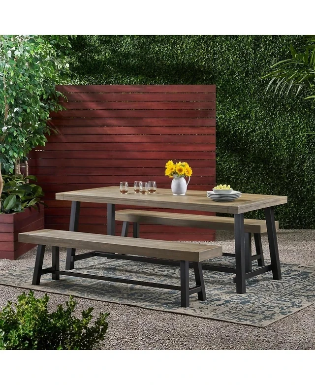 Slickblue Outdoor 3-Piece Dining Set with Acacia Wood Table and 2 Benches