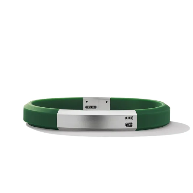 Streamline ID Bracelet with Green Rubber and Sterling Silver, 10mm
