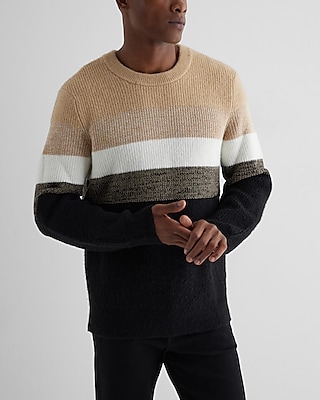 Striped Chest Ribbed Knit Crew Neck Sweater