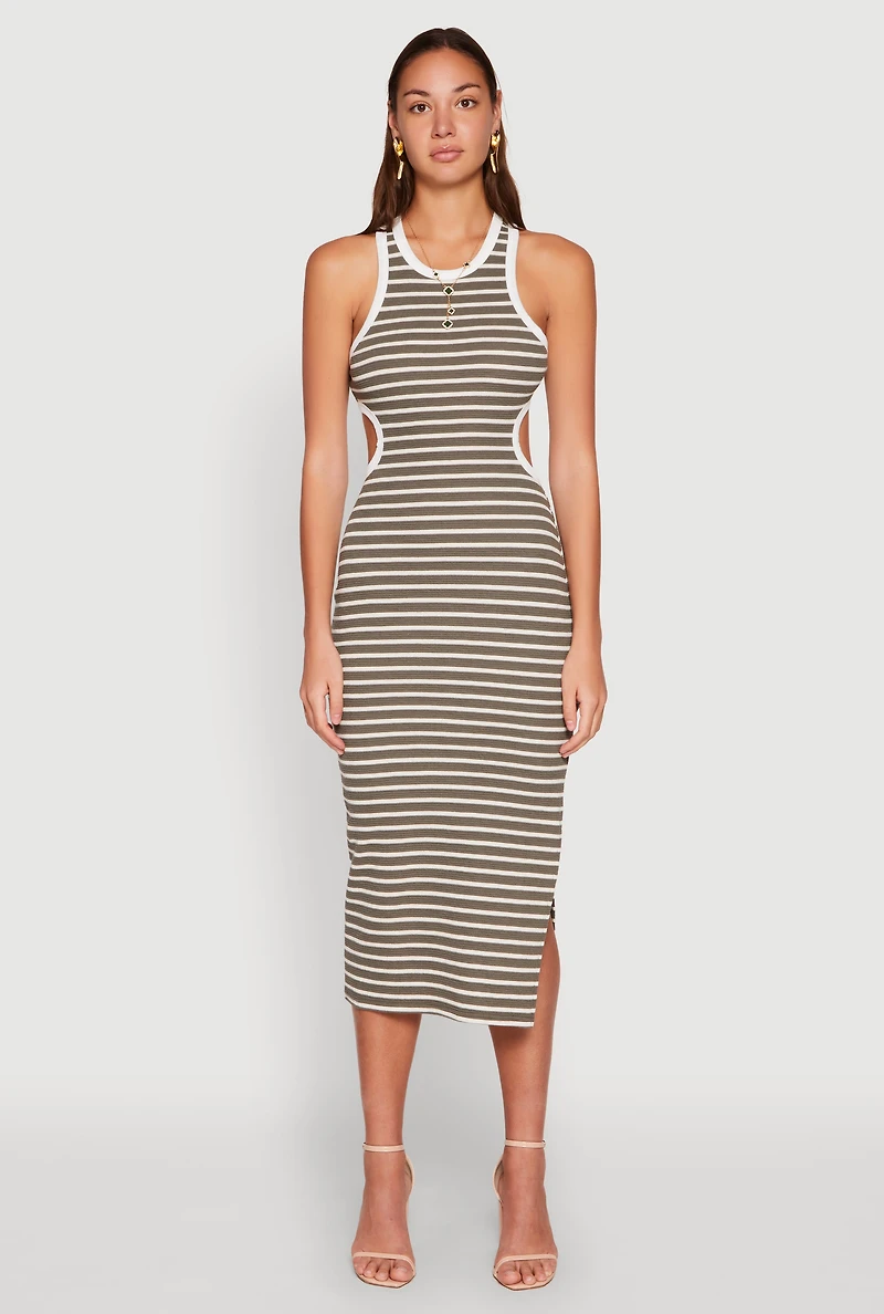 Striped Cut Out Midi Tank Dress