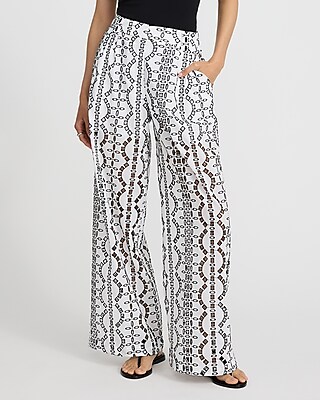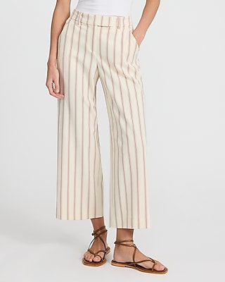 High Waisted Striped Gauze Pull On Wide Leg Ankle Pant