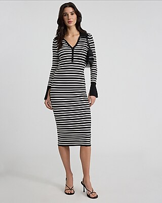 Square Neck Long Sleeve Knit Midi Sheath Dress