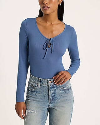 Fitted Ribbed Long Sleeve Tie Front Bodysuit