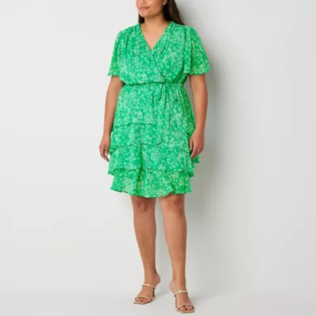 Danny & Nicole Womens Plus Short Sleeve Floral Midi Fit + Flare Dress