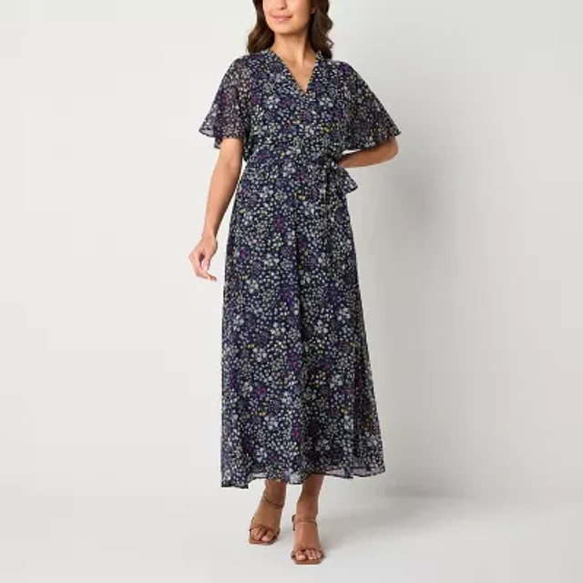 Studio 1 Womens Short Sleeve Floral Maxi Dress