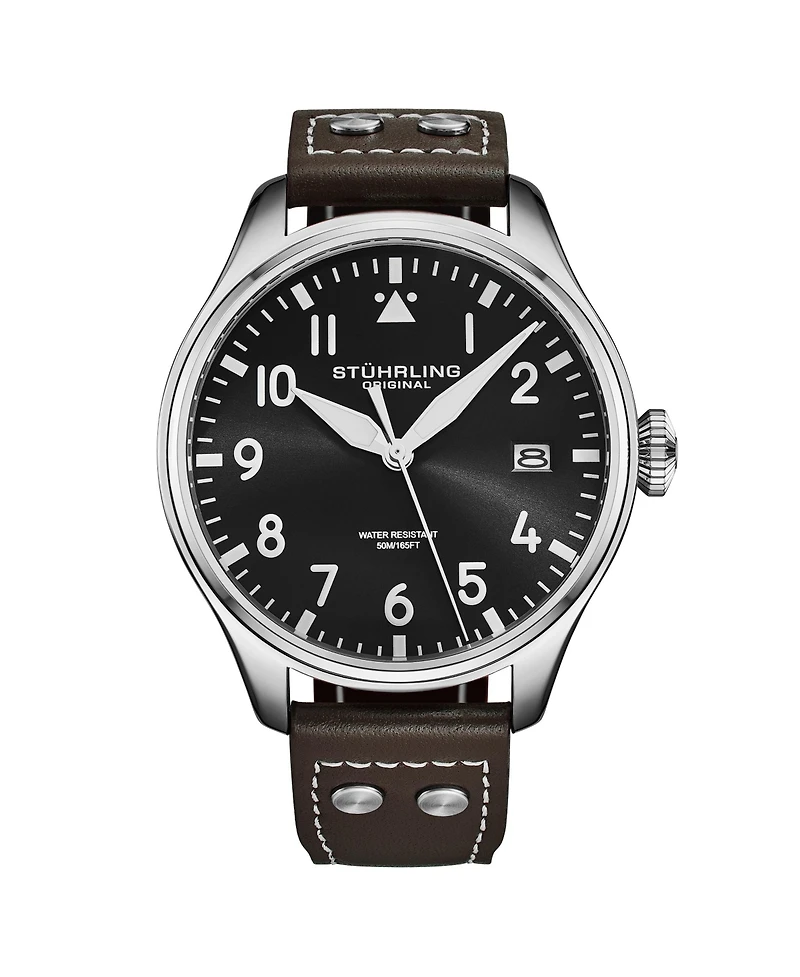 Stuhrling Airman 4078 Men s Quartz Pilot Watch, 43mm Alloy Case with Leather Strap