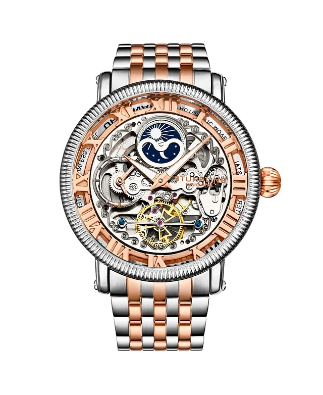 Stuhrling Men's Rose Gold - Silver Tone Stainless Steel Bracelet Watch 49mm