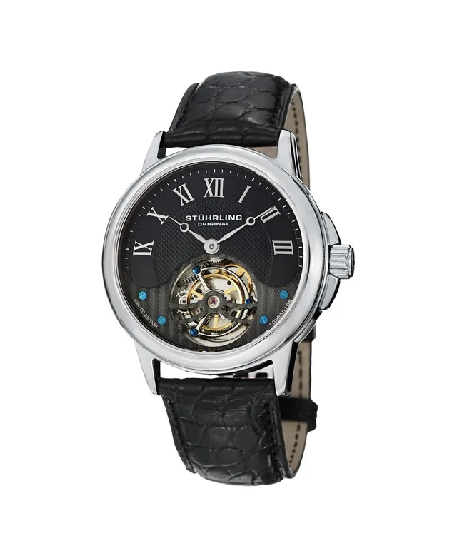 Stuhrling Original Model 541 Stainless Steel Case ,Genuine Alligator Strap, Exposed Tourbillon Movement Men's watch