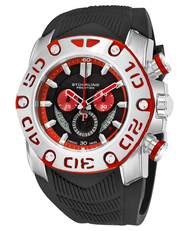 Stuhrling 4050 Men's Quartz Chronograph, Alloy Silver Case, Green Dial, Black Bezel,black rubber strap Watch