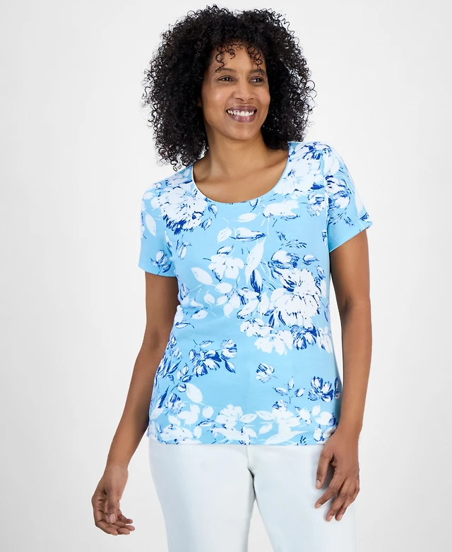 Style & Co Petite Floral-Print Scoop-Neck Short-Sleeve Knit Top, Exclusively at Macy's