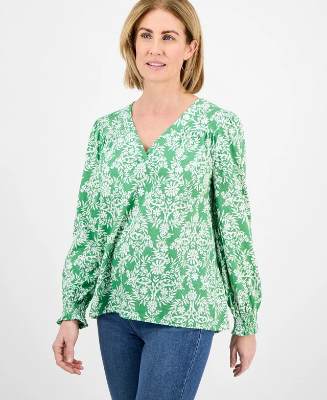 Style & Co Petite Gram Floral Long-Sleeve Top, Exclusively at Macy's