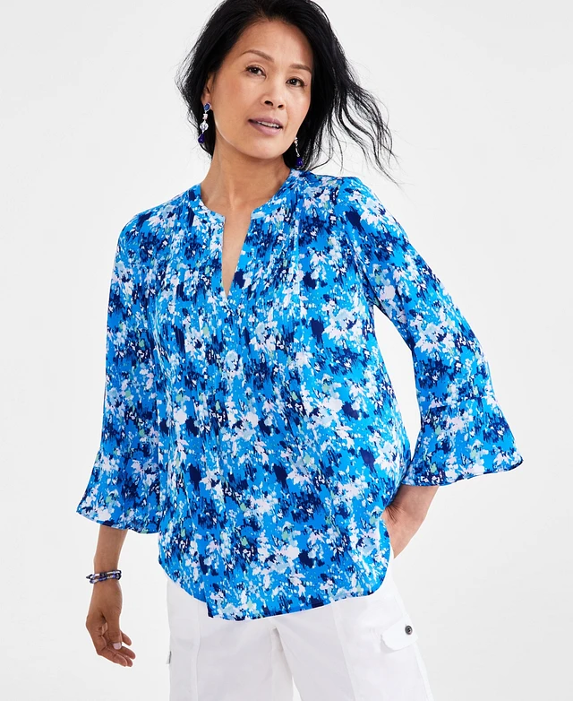 Style & Co Petite Printed 3/4-Sleeve Pintuck Top