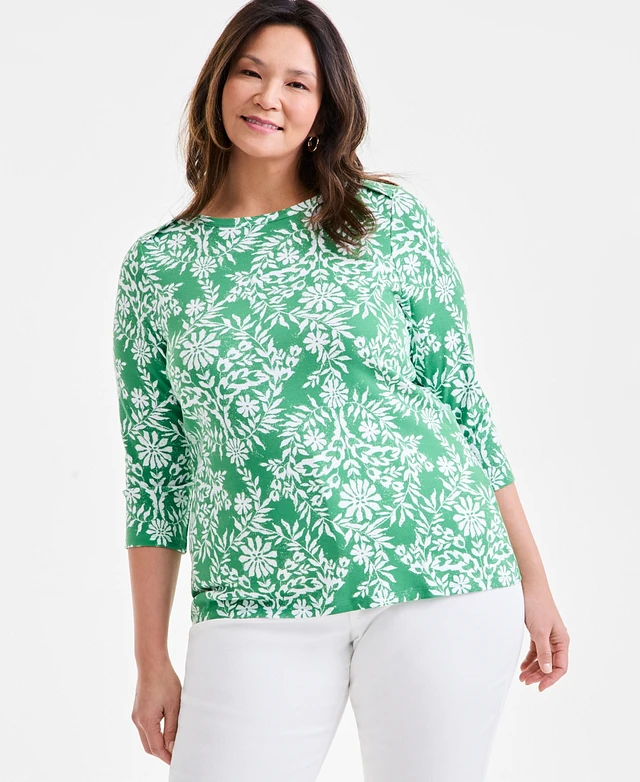 Style & Co Women's Printed Pima Cotton 3/4 Sleeve Boat-Neck Top, Macy's Exclusive